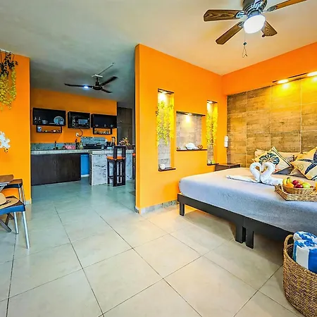 Az 1 szobás A2 Romantic Beachside Escape Capri Theme Memory Foam King Bed Kitchen Ac Playa del Carmen apartman könnyű elérhetőséget kínál az olyan turisztikai látványosságokhoz, mint a nagyjából 5 perc sétára található Playa Publica 88. A 45 m^2-es apartmanban van egy terasz, kilátással az udvarra.
